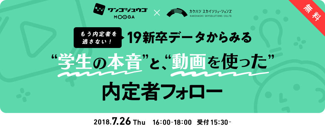 【7/26開催】もう内定者を逃さない! 19新卒データからみる学生の本音と、動画を使った内定者フォロー